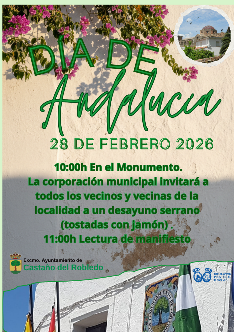 Celebramos el día de Andalucía en nuestro municipio. Nos encontraremos en el Monumento para disfrutar de una mañana de convivencia compartiendo un tradicional desayuno serrano a las 10 de la mañana.