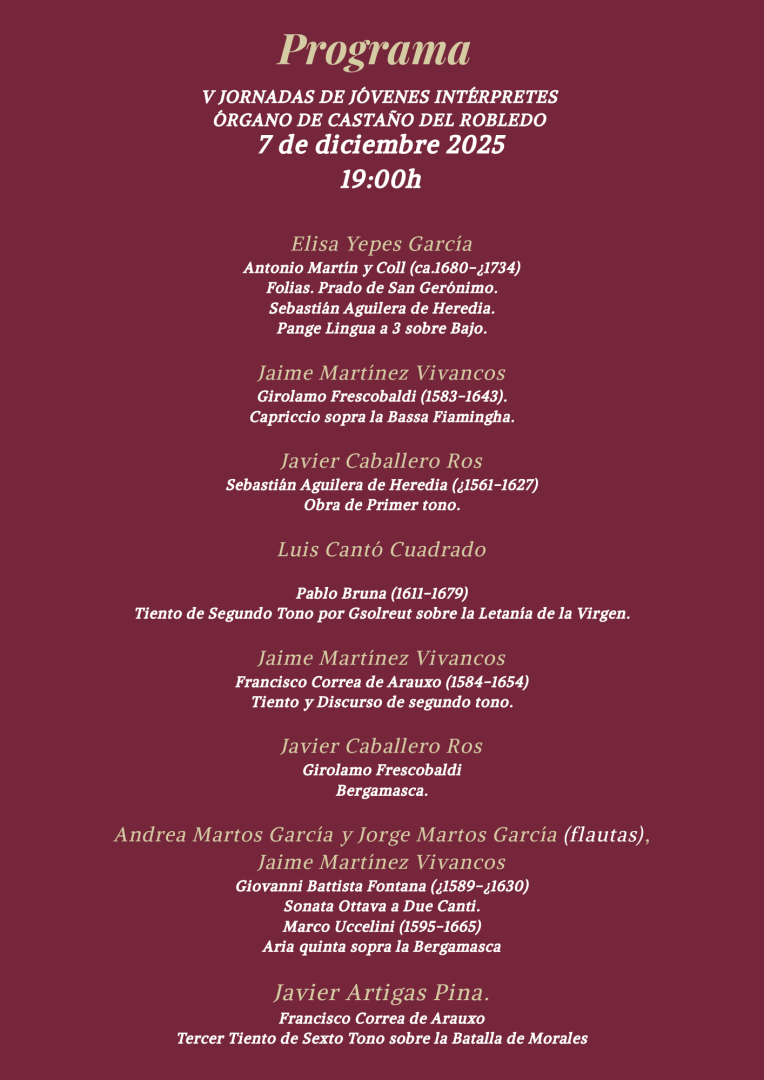 Durante los días 6 y 7 de diciembre podremos disfrutar nuevamente de nuestro órgano de la parroquia de Santiago Apóstol. Ambos conciertos serán a partir de las 19,00H.